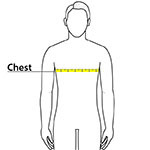 | Chest | 32-34 | 35-37 | 38-40 | 41-43 | 44-46 | 47-49 | 50-53 | 54-57 | 58-60 | 61-63 |